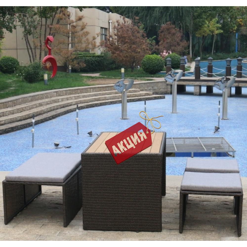 Плетеный диван-трансформер S330A-W63 Brown от бренда Afina. В составе комплекта: диван, который трансформируется в обеденную группу: стол, лавочка и 2 пуфа. Высококачественная лоза из полиротанга коричневого цвета стойкая к любым атмосферным явлениям. Крепкий стальной каркас с полимерным антивандальным покрытием и отличным качеством сварки. Изделие сплетено вручную нашими мастерами под жестким контролем качества на каждом этапе производства. Лоза максимально приближена по рельефу и текстуре к естественному материалу. Идеально подходит для использования на улице и внутри помещения в любую погоду. Не боится воды, солнца и минусовой температуры. Подушки входят в комплект. Оттенки цвета на фото могут отличаться от представленного образца. Декинг на столешнице серого цвета.