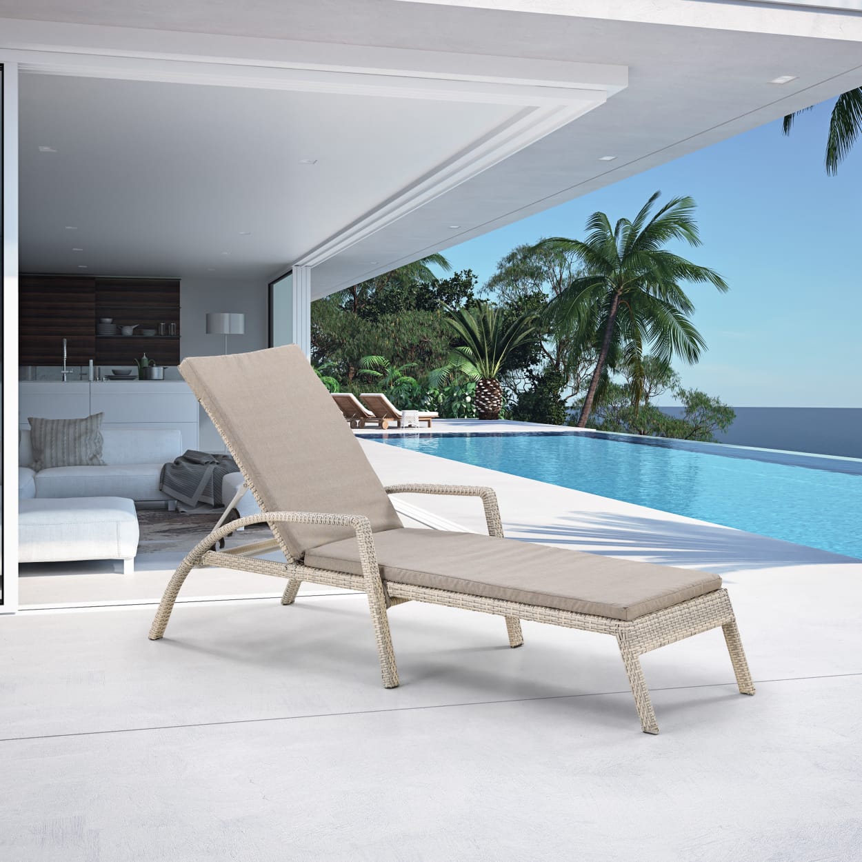 Шезлонг-лежак плетеный A30C2-W85 Latte с матрасом