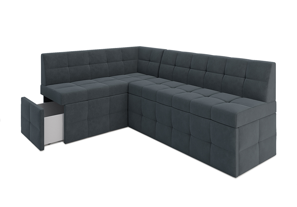 —Кухонный угловой диван дельфин Атлантис велюр серо-синий